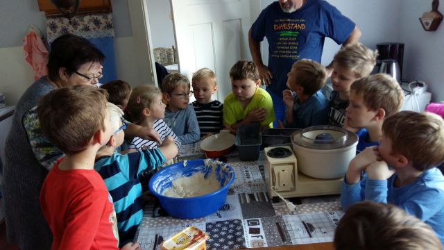Unter der Anleitung von Annetraut Schütz konnten zuerst die Kinder der Klasse 1/2 von Frau Amelsberg und dann die der Klasse 3/4 von Frau Hannappel den Brotteig vorbereiten.