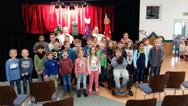 Mittlerweile gehört es schon zur Tradition, dass unsere Schülerinnen und Schüler gemeinsam mit den Kindergartenkindern das Puppentheater im Dorfgemeinschaftshaus besuchen.