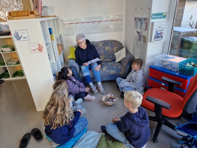 In diesem Jahr haben wir an unserer Schule den Bundesweiten Vorlesetag am 21. November 2025 auf ganz besondere Weise gefeiert. Gemeinsam mit der Kita Nauberg-Räuber organisierten wir eine Lesewanderung durch Norken, die sowohl für die Kinder als auch für die Erwachsenen ein unvergessliches Erlebnis war. Die Lesewanderung führte uns zu verschiedenen Stationen in Norken, an denen wir spannende Geschichten hörten und die Gemeinschaft genossen. Die Stationen waren unter anderem das Dorfgemeinschaftshaus, die Turnhalle, aber auch private Wohnzimmer.